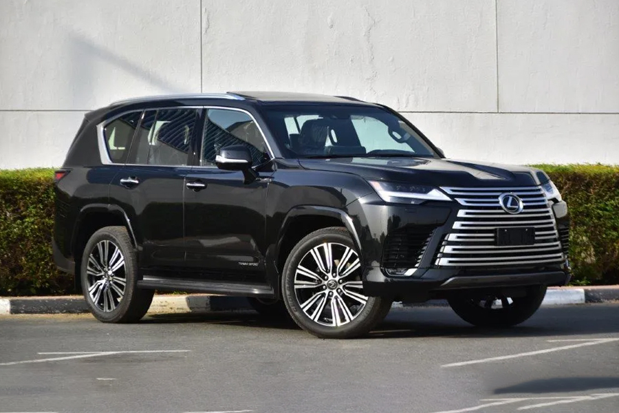 The Lexus LX600 is a commanding luxury SUV that combines rugged off-road capabilities with sophisticated design elements. Its muscular yet refined exterior features bold lines and an aggressive stance, highlighted by the signature Lexus spindle grille and sleek, angular LED headlights. The strong, sculpted side profile enhances the LX600’s powerful presence, while its aerodynamic features improve performance and efficiency. The rear of the LX600 is equally striking, with a wide rear bumper, sharp LED taillights, and a prominent rear spoiler that blends performance with elegance. Its imposing proportions, high ground clearance, and large wheels exude both luxury and off-road readiness, making the LX600 a standout on any terrain, from city streets to rugged trails. Every angle of the LX600 showcases Lexus’ commitment to both luxury and performance.