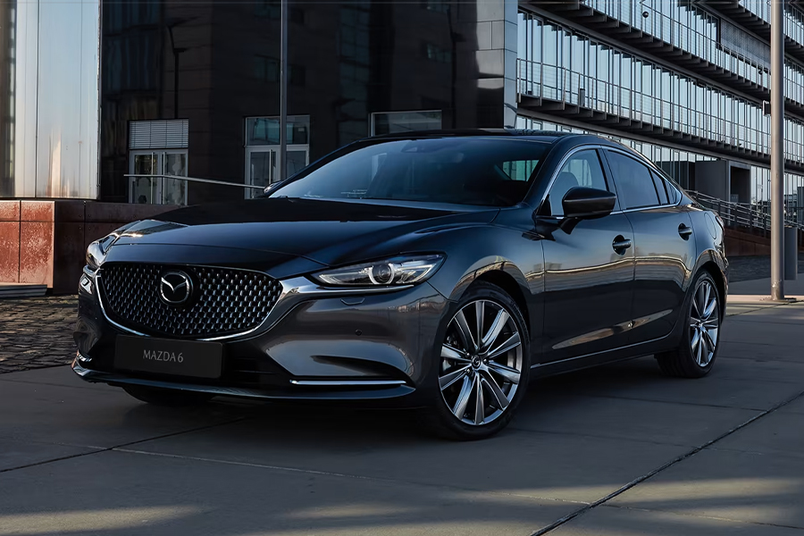 The Mazda 6 is a sophisticated and dynamic midsize sedan that combines sleek design with exceptional performance. Its elegant, flowing lines and sculpted body give it a refined yet athletic presence on the road. The front fascia features Mazda’s signature wide grille, flanked by sharp, angular LED headlights, enhancing its bold and confident appearance. The aerodynamic profile, with smooth contours and a low, wide stance, not only improves its efficiency but also emphasizes its performance-oriented design. The rear end is equally striking, with sleek taillights, dual exhaust outlets, and a subtle rear spoiler, adding to its sporty and upscale appeal. The Mazda 6’s design is a perfect blend of style and practicality, making it stand out in any setting.