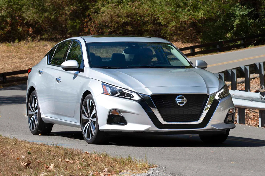 The Nissan Altima’s exterior design combines a sleek, modern silhouette with performance-oriented features. Its bold front end is highlighted by a distinctive V-motion grille, angular LED headlights, and sharp character lines that flow across the body, creating a refined yet dynamic look. The sedan’s low, wide stance is enhanced by sculpted side panels and a smooth roofline that add to its overall aerodynamic efficiency. The rear features stylish LED taillights, a sculpted rear bumper, and dual exhaust outlets, providing a sporty finish that complements its performance capabilities. The Altima’s carefully crafted proportions and lightweight construction improve fuel efficiency and handling, while its large wheels and low-profile tires add to its road presence. With its perfect balance of elegance and agility, the Nissan Altima delivers a driving experience that’s both refined and exhilarating.